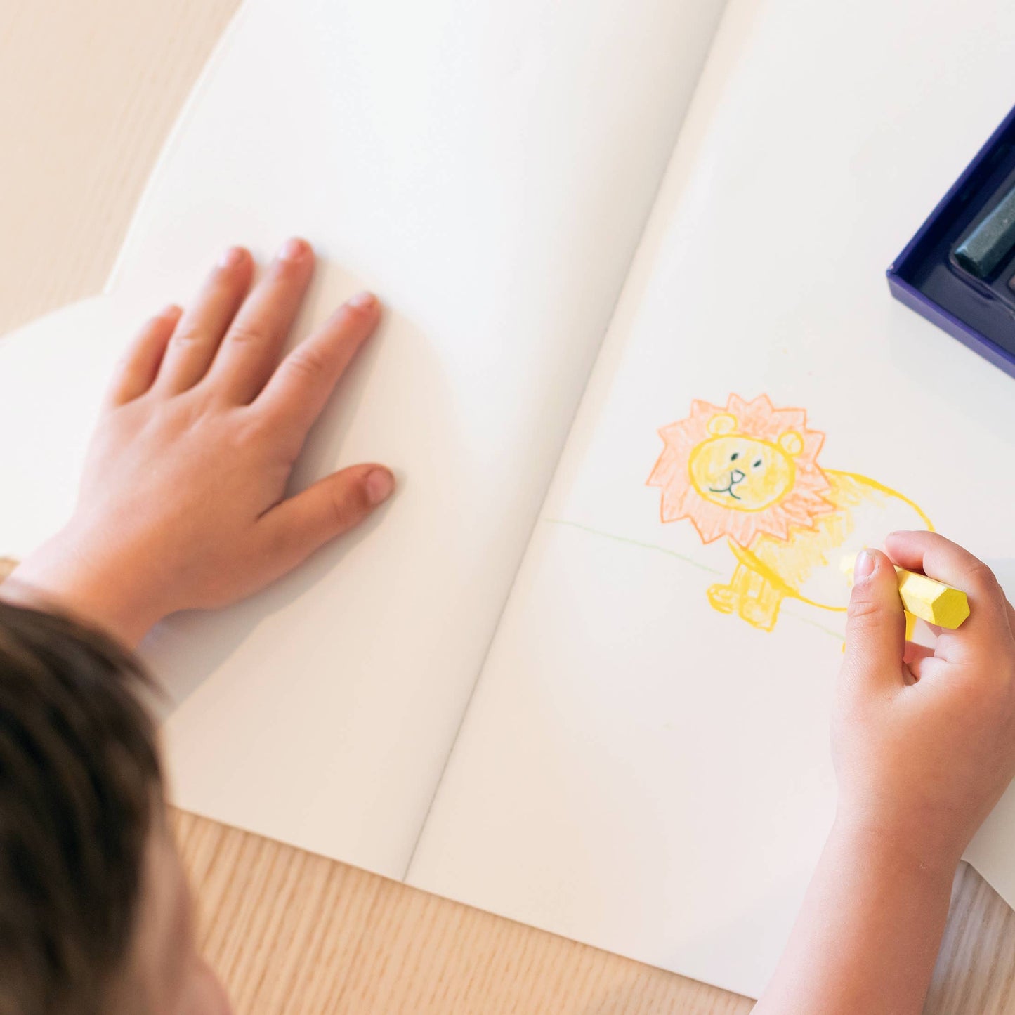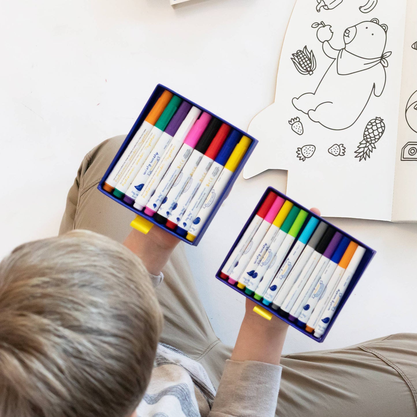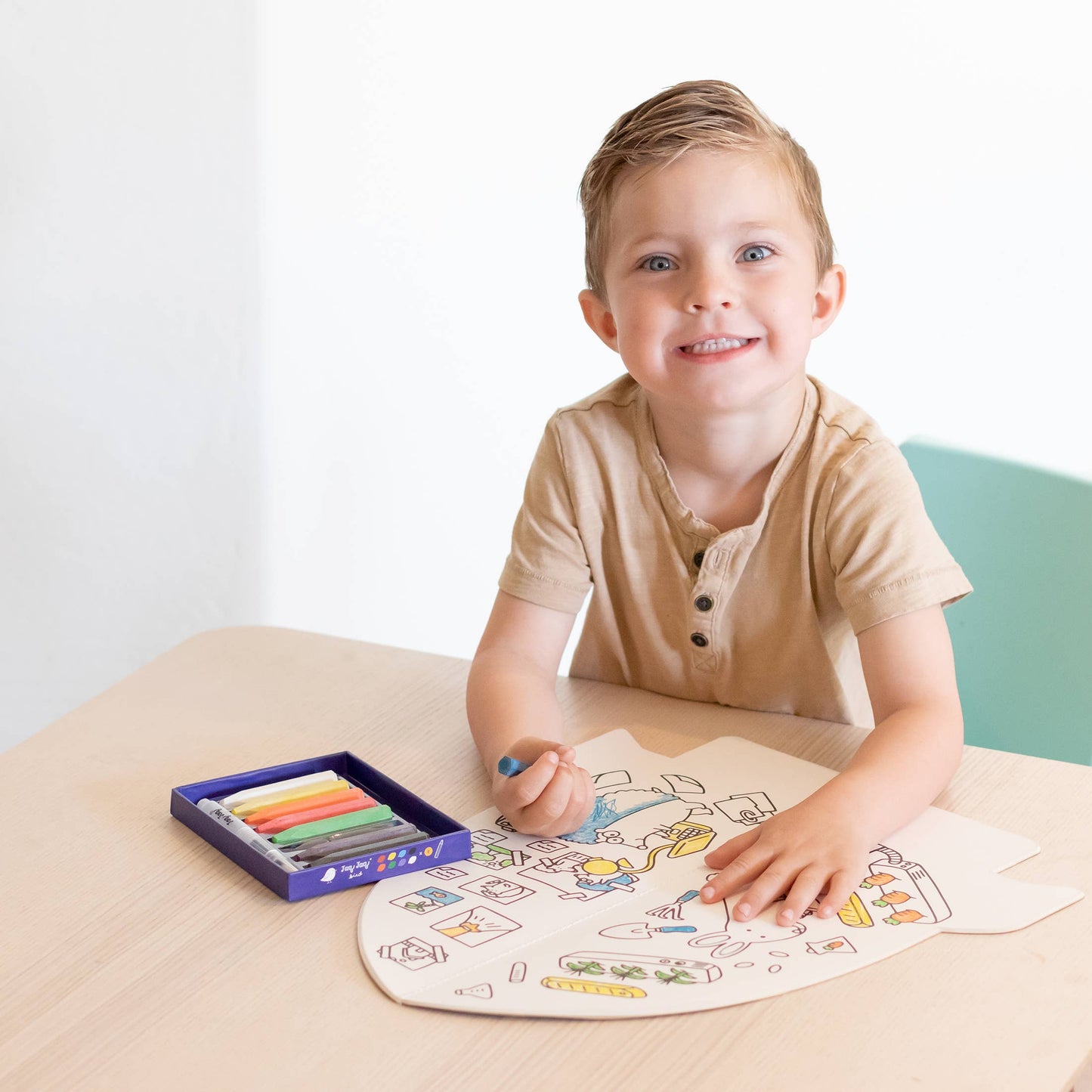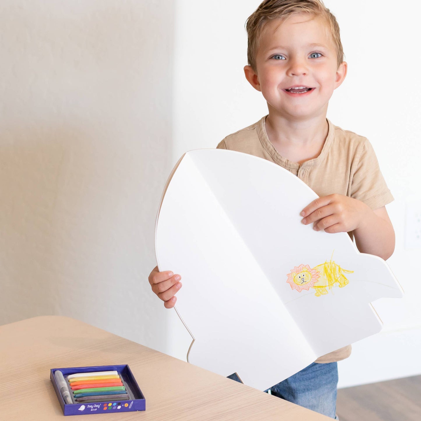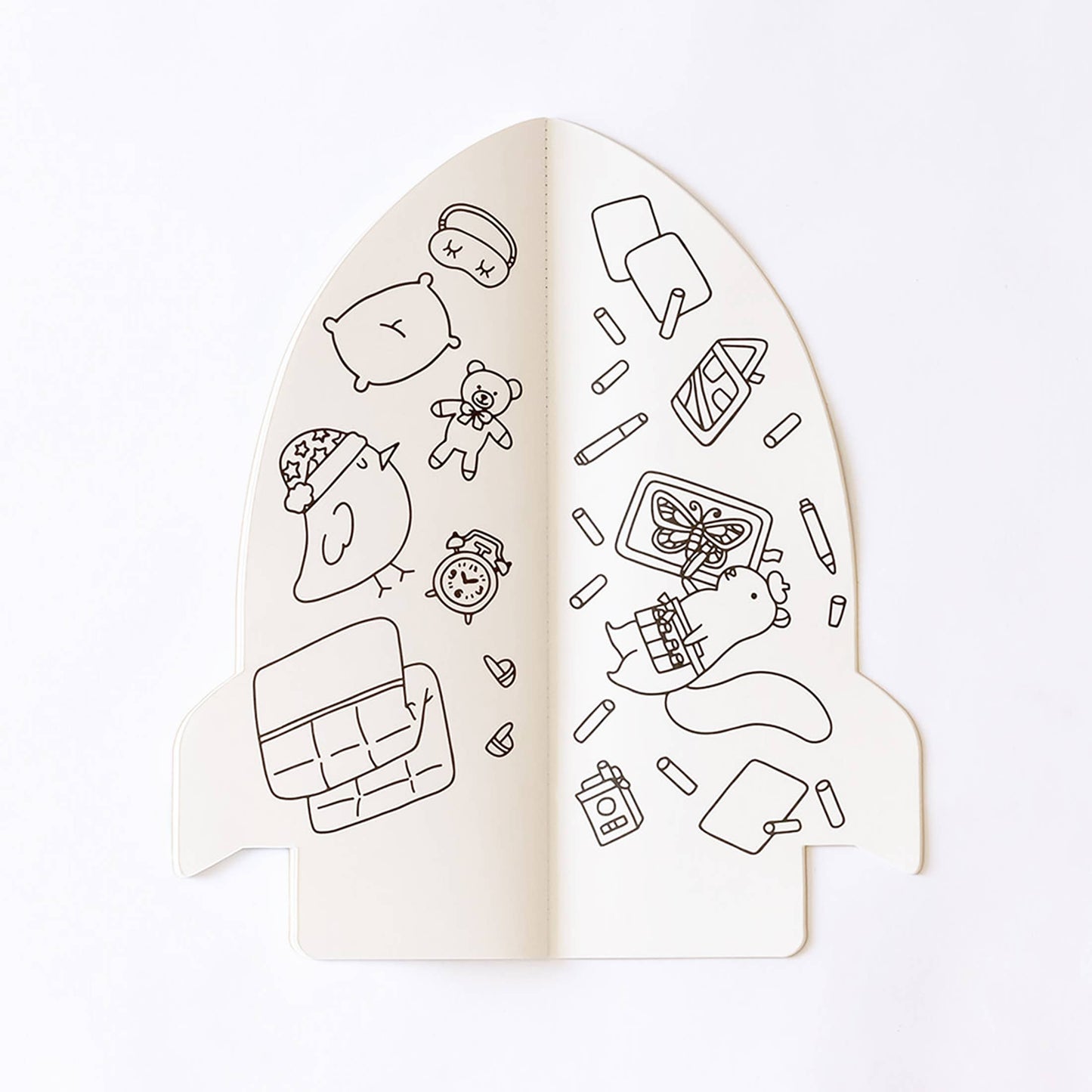 Join sammie, esme and sloane on a rocket ship adventure through space in this jumbo coloring book featuring Jaq Jaq Bird characters and their friends. Each book contains 6 illustrated coloring pages and 26 blank pages for drawing and doodling. Works great with butterstix aquarelle wet and dry crayons for dust-free and mess-free coloring that can become watercolor with the included brush pen.