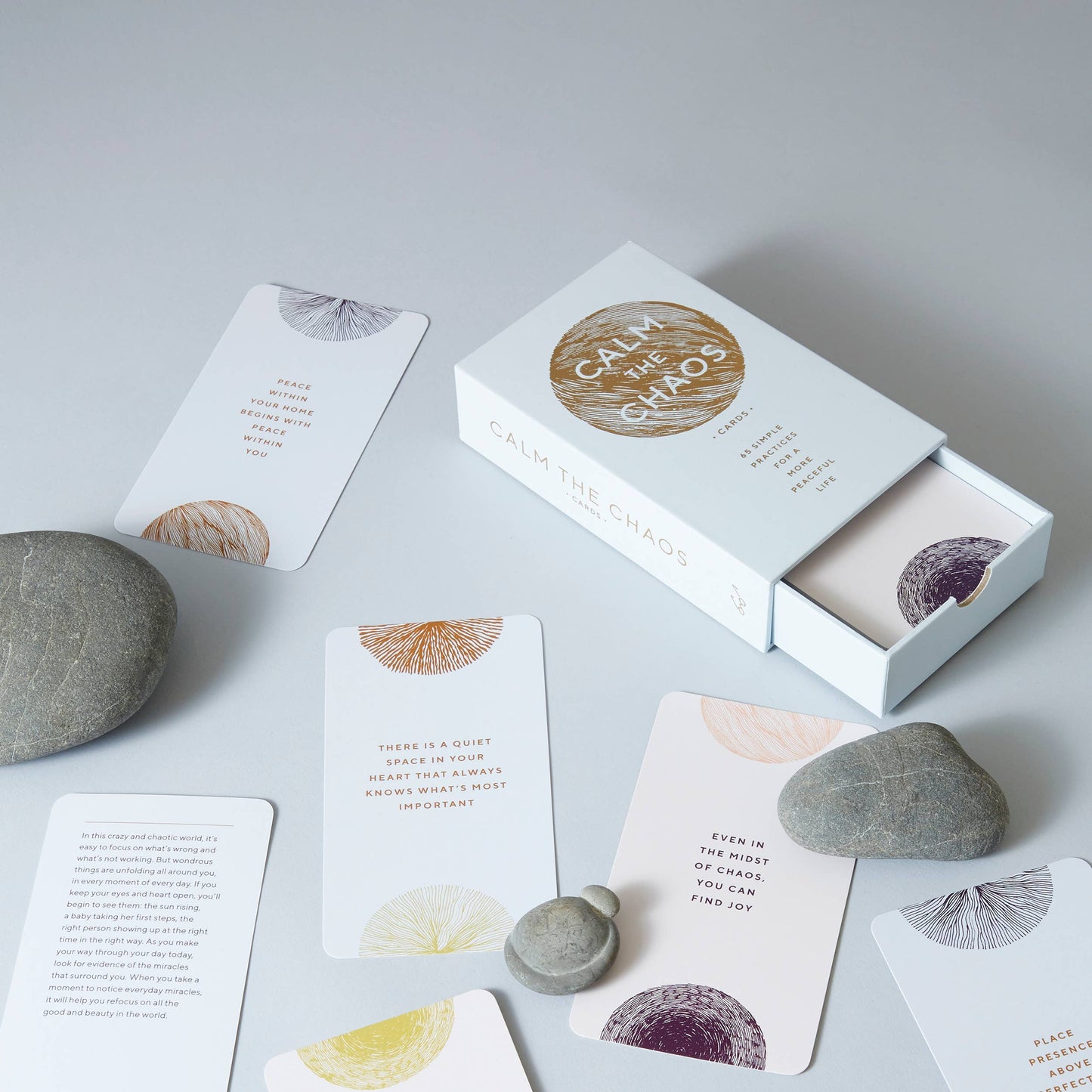 This deck of 65 soothing cards provides a simple tool for managing daily stress and promoting well-being. Each card features an encouraging mantra on the front with a short practice on the back, including exercises for mindfulness, self-care, awareness, grounding, and gratitude. Pull one card each morning to center yourself, or select several to set weekly intentions. The portable package with foil stamping makes it easy to create moments of peace and clarity anywhere.