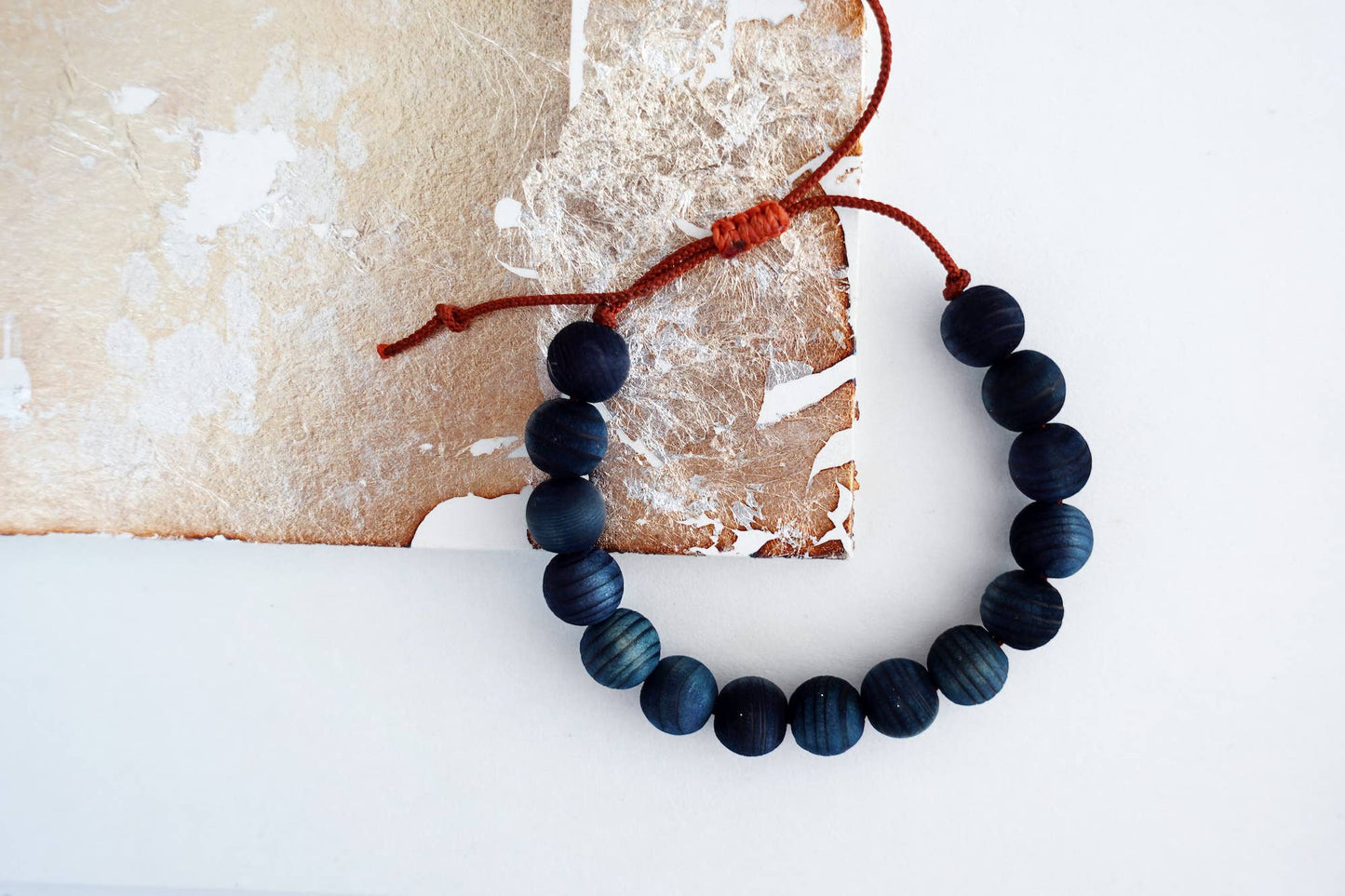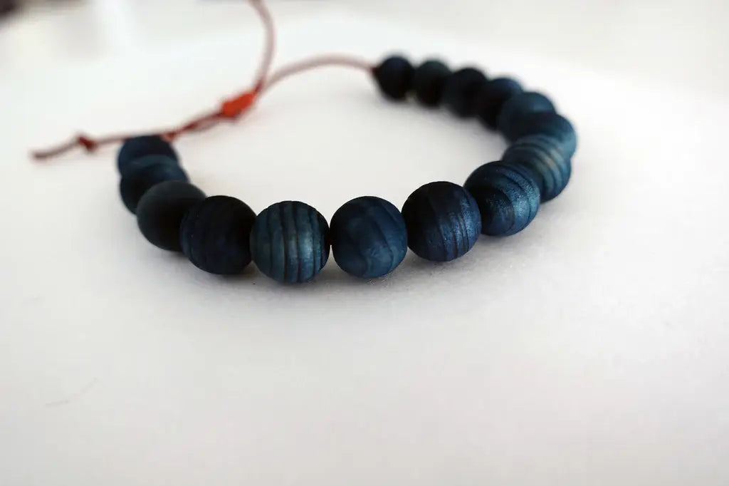 Indigo dyed Yakusugi cedar beads bracelet