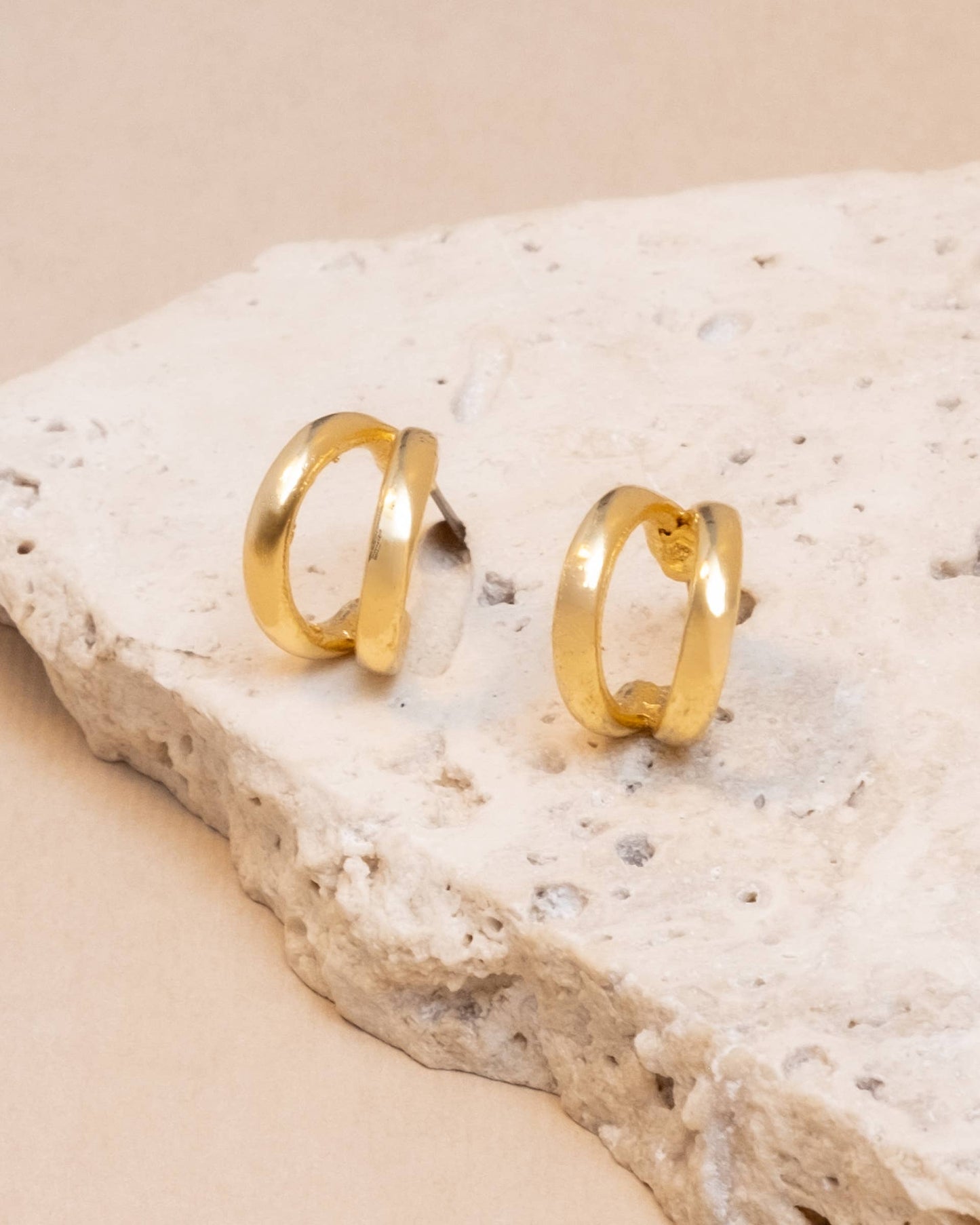 Gold double mini hoop earrings