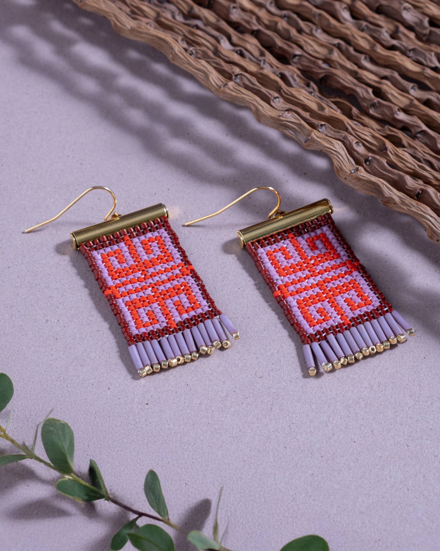 Beaded handwoven jungle labyrinth earrings (wine/red)
