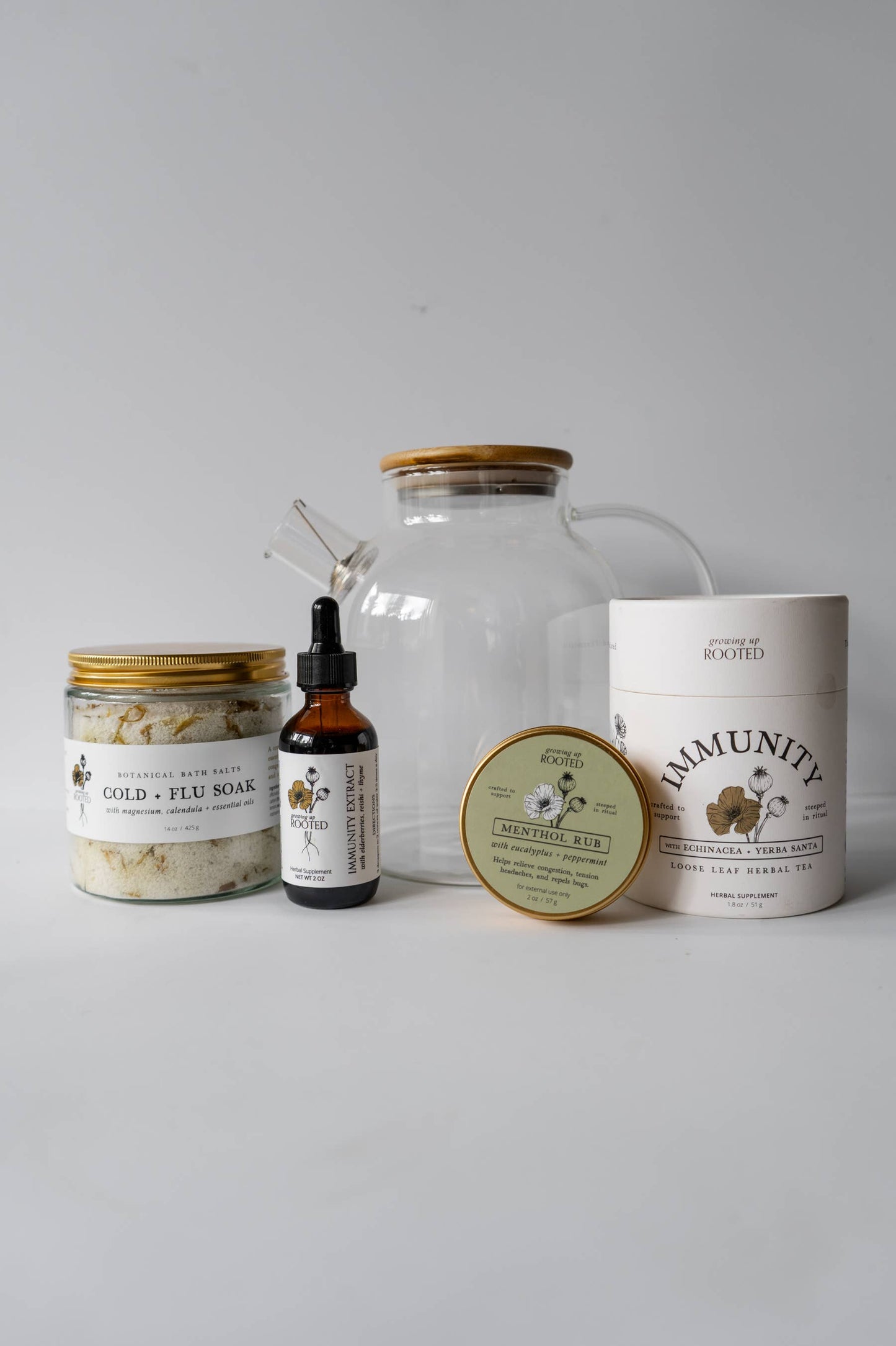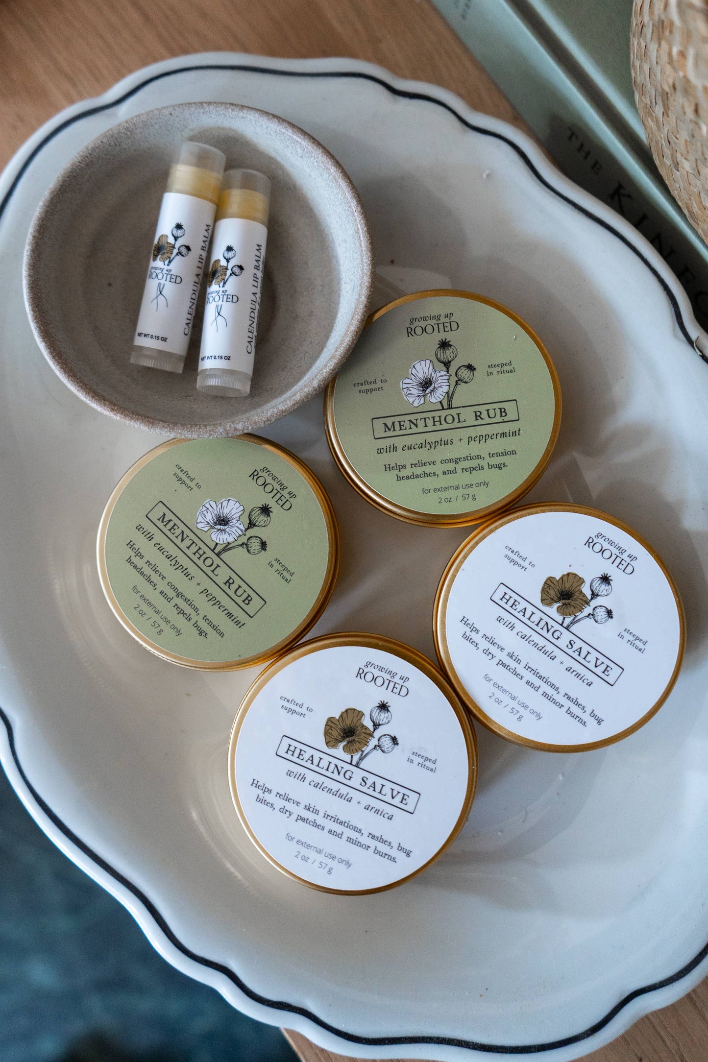 Ingredients: Cold pressed extra virgin olive oil (certified organic) infused with eucalyptus (certified organic) and mullein, beeswax, menthol crystals (certified organic), eucalyptus and peppermint essential oils (certified organic)