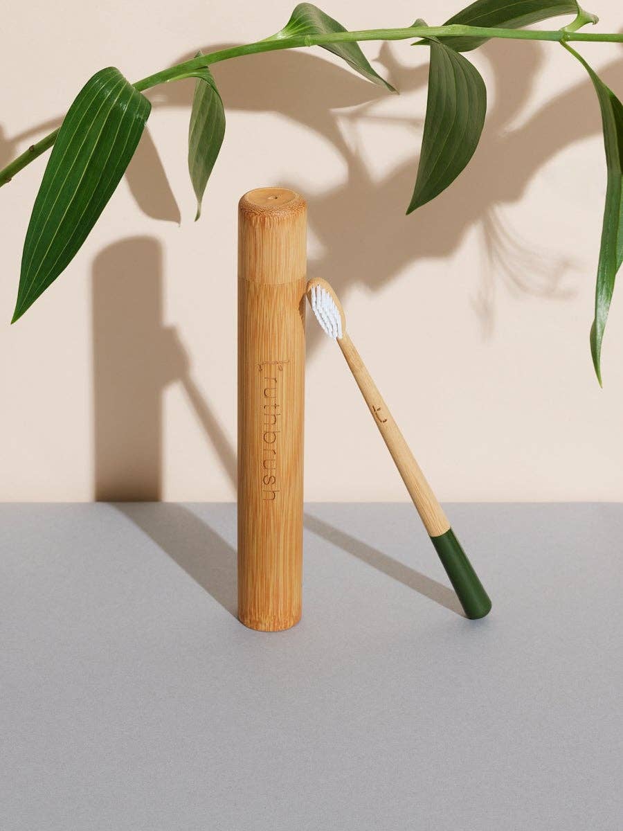 Award-winning toothbrush from Truthbrush featuring plant-based bristles made from castor bean oil in an attractive moss-green finish. Truthbrush is a member of 1% for the planet, contributing 1% of total sales to environmental non-profits creating positive change. A tree is planted for every order received.