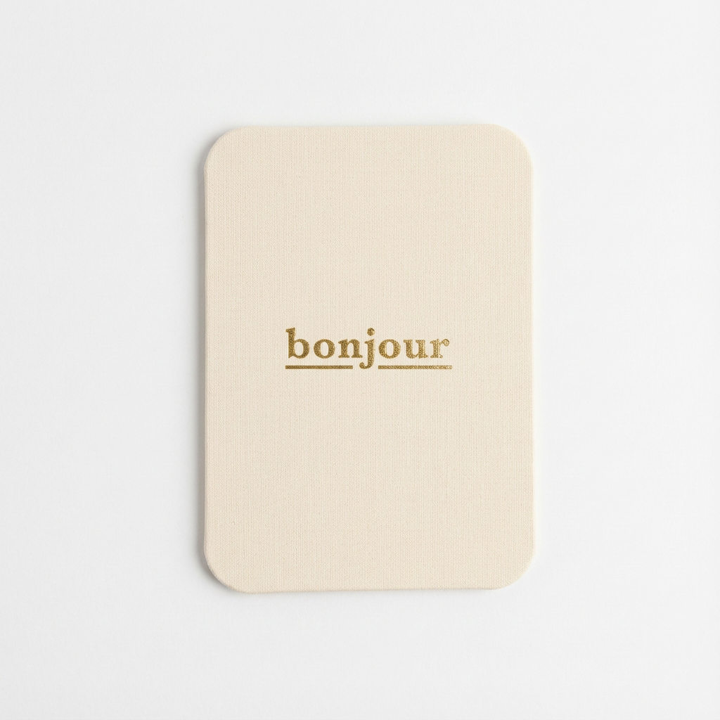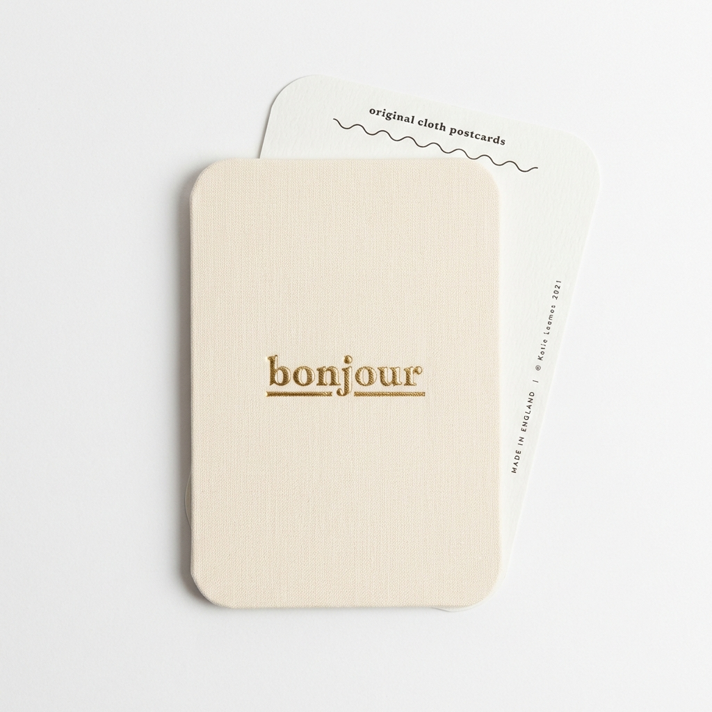 Katie Leamon: "Bonjour" Cloth-Covered Postcard